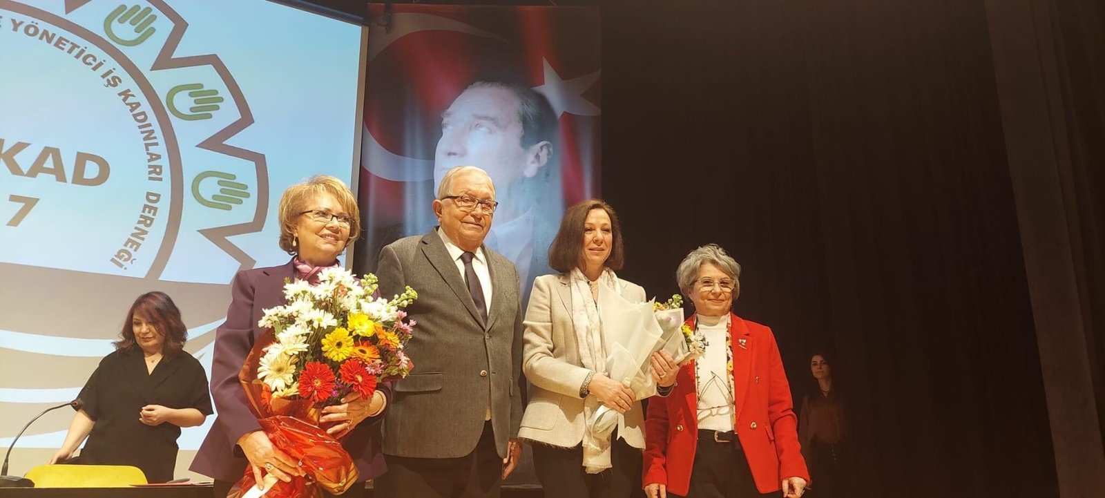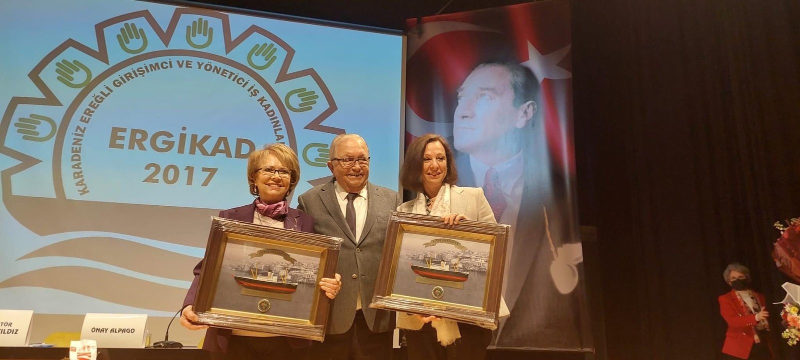 Söyleşi kısmında ise Moderatör Gülhan Yıldız’ın soruları üzerine; Türkonfed Başkan Yardımcısı ve Sütaş Grubu Yönetim Kurulu Başkan Yardımcısı Serpil Veral ile Kdz. Ereğli’nin yerli ailelerinden Devlet Eski Bakanı, Hukukçu-Akademisyen Önay Alpago, 8 Mart Dünya Emekçi Kadınlar Günü’nün ne anlam ifade ettiği, kadın erkek eşitliği konusu ve kadınların demokratik hukuksal-hakları gibi sorularını cevaplandırarak sunumlarını yaptılar.