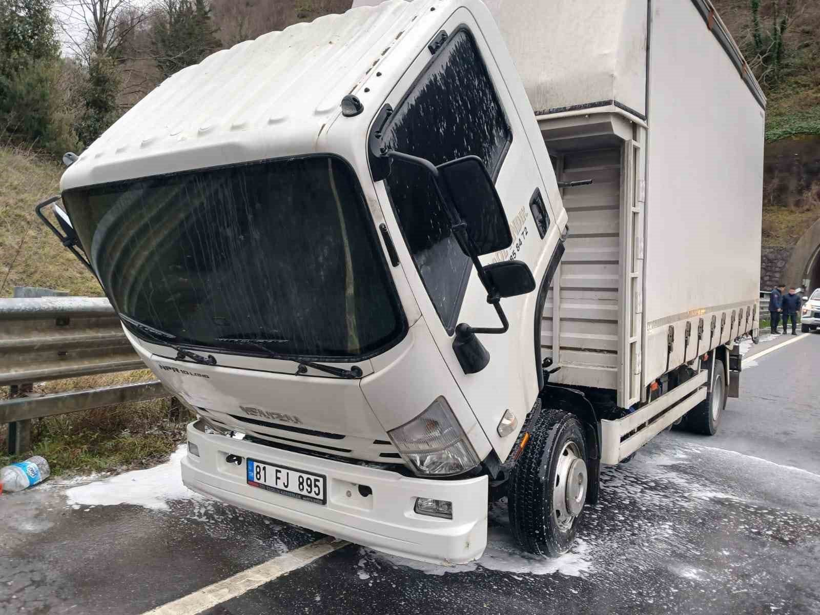 Gıda yüklü Kamyonet’in motorunda yangın çıktı