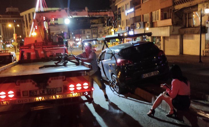 Nazlı Ç.’nin ehliyetine 6 ay süreyle el konulurken; cezai işlemde uygulandı.Sürücünün aracı çekici ile kaldırılırken, kaldırıma oturup, aracını seyretmesi objektiflere yansıdı..