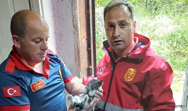 Kurtardığı yavru kediyi bakın nasıl sevdi!