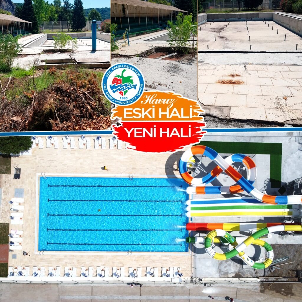 Kdz. Ereğli Belediyesi teslim aldığında harap durumda olan yüzme havuzu ve çevresi yeniden hayat buldu. Sevgi, Barış ve Dostluk plajları ile mesire alanı Ereğli halkının ve çevrenin büyük beğenisini toplarken, Belediye devralmadan önce kullanılmaz hale gelmiş olan yüzme havuzu yenilendi ve havuz kenarına büyük bir aquapark yapıldı. Ereğli halkı ve konuklar, 18 Ağustos Çarşamba gününden itibaren yüzme havuzunu ve aquaparkı kullanabilecekler.