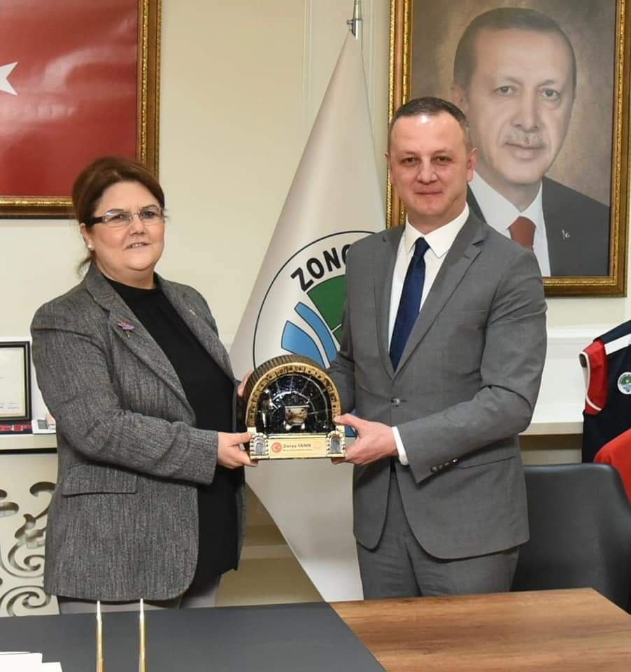 Aile ve Sosyal Hizmetler Bakanı Derya Yanık esnaf ziyareti sonrasında Vali Mustafa Tutulmaz ile birlikte Zonguldak Belediye Başkanlığını ziyaret etti, Belediye Başkanı Ömer Selim Alan’dan çalışmalar konusunda bilgi aldı.