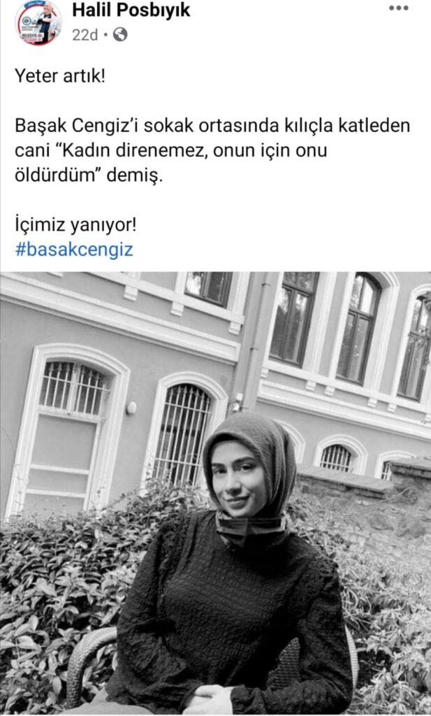 İstanbul’un Ataşehir ilçesinde geçtiğimiz gün samuray kılıcı ile işlenen bir cinayetle sarsılmıştı. Akli dengesi yerinde olmadığı iddia edilen saldırgan takip ettiği 28 yaşındaki Başak Cengiz isimli genç kadına samuray kılıcı ile saldırdı. Ağır yaralanan genç kadın tüm müdahalelere rağmen kurtarılamayarak hayatını kaybetti. Türkiye’yi derinden sarsan bu cinayete her kesimden tepki gelirken, Kdz. Ereğli Belediye Başkanı Halil Posbıyık ise sosyal medya hesabından genç kadının resmini paylaşarak üzüntüsünü dile getirdi.