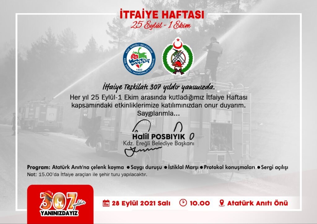 Kdz. Ereğli Belediye Başkanı Halil Posbıyık, İtfaiye Teşkilatı’nın kuruluşunun 307’nci yılı nedeniyle kutlama mesajı yayımladı.