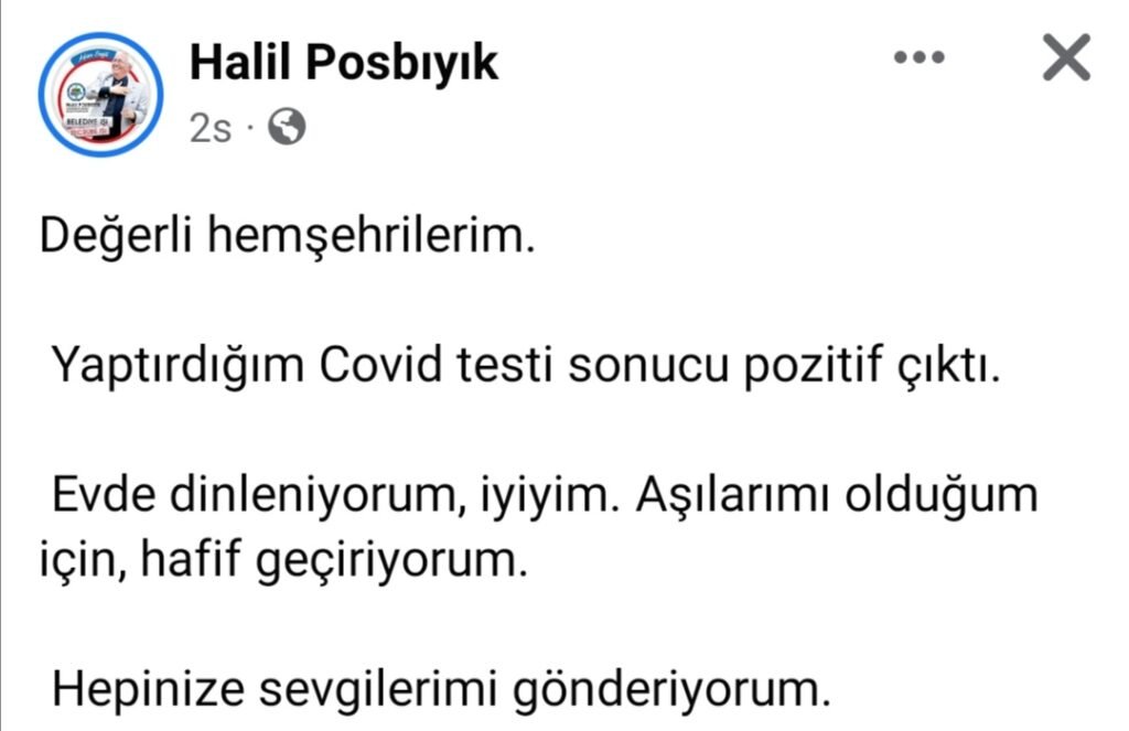 Sosyal medya hesabından bir açıklama yapan Ereğli Belediye Başkanı Halil Posbıyık yaptırdığı Kovid 19 testinin pozitif çıktığını duyurdu. Posbıyık yaptığı paylaşımda şu bilgileri verdi.