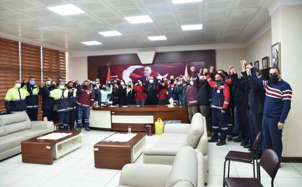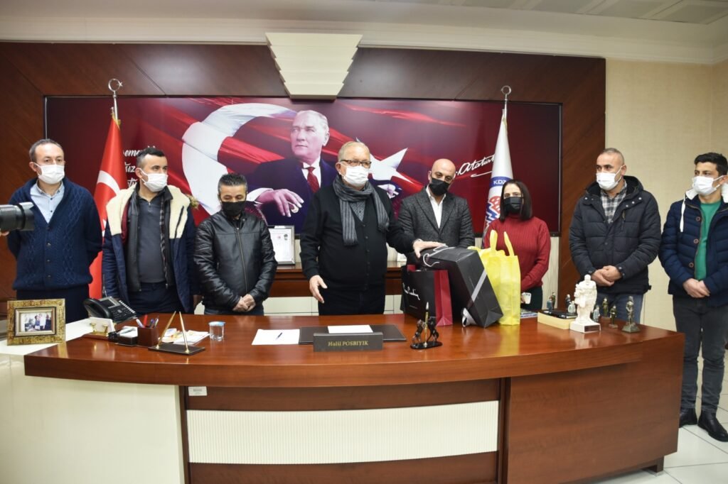 Kdz. Ereğli Belediye Başkanı Halil Posbıyık’a, 1 Ocak 2022 tarihinden geçerli olmak üzere ek zam yaptığı Personel Şirketi çalışanları teşekkür ziyaretinde bulundu.