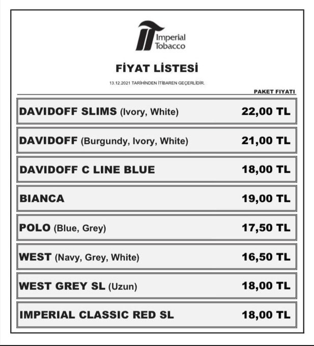 Türkiye Tekel Bayiler Platformu Başkanı Özgür Aybaş, sigara grubuna gelen zam haberini Twitter’daki hesabından duyurdu.