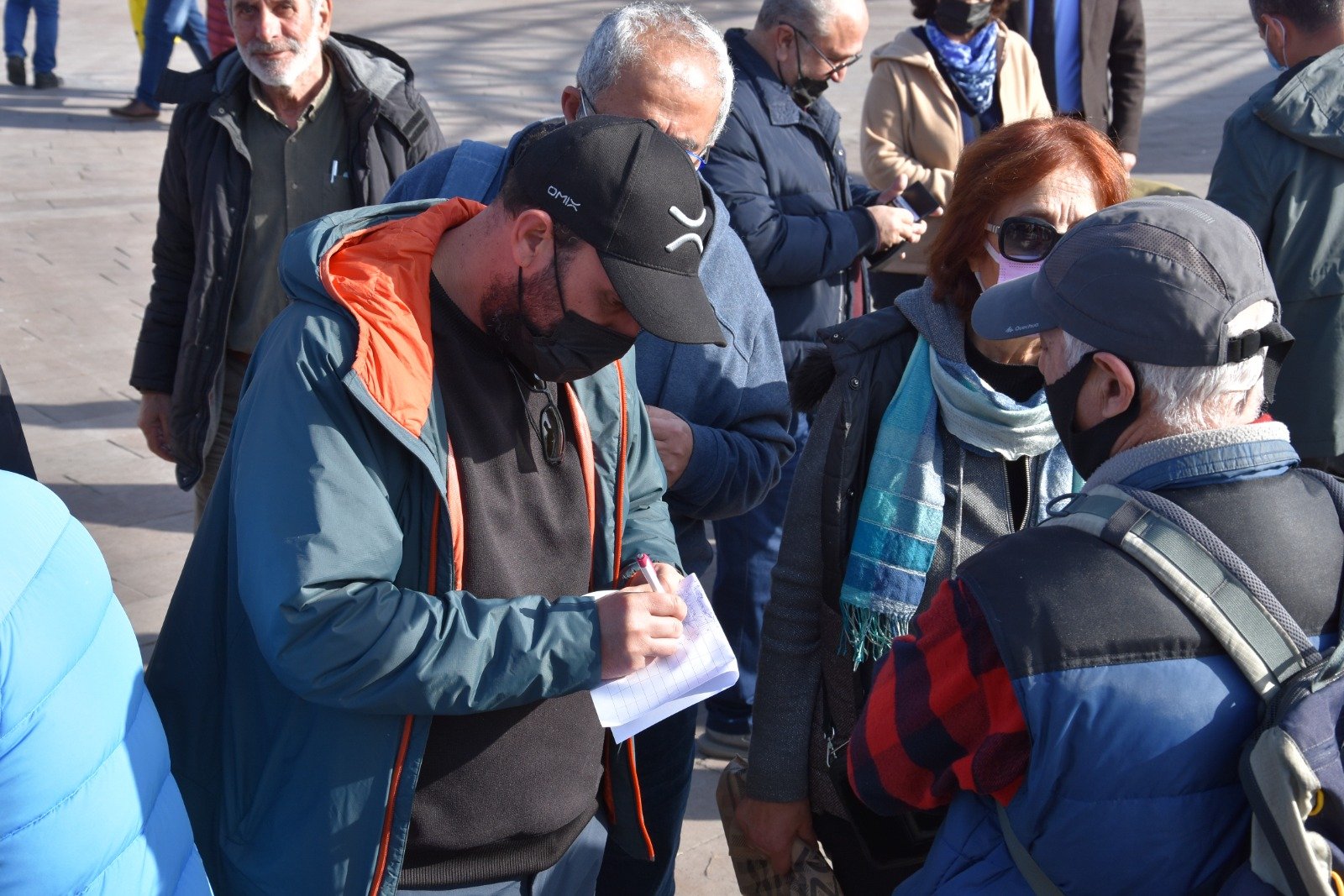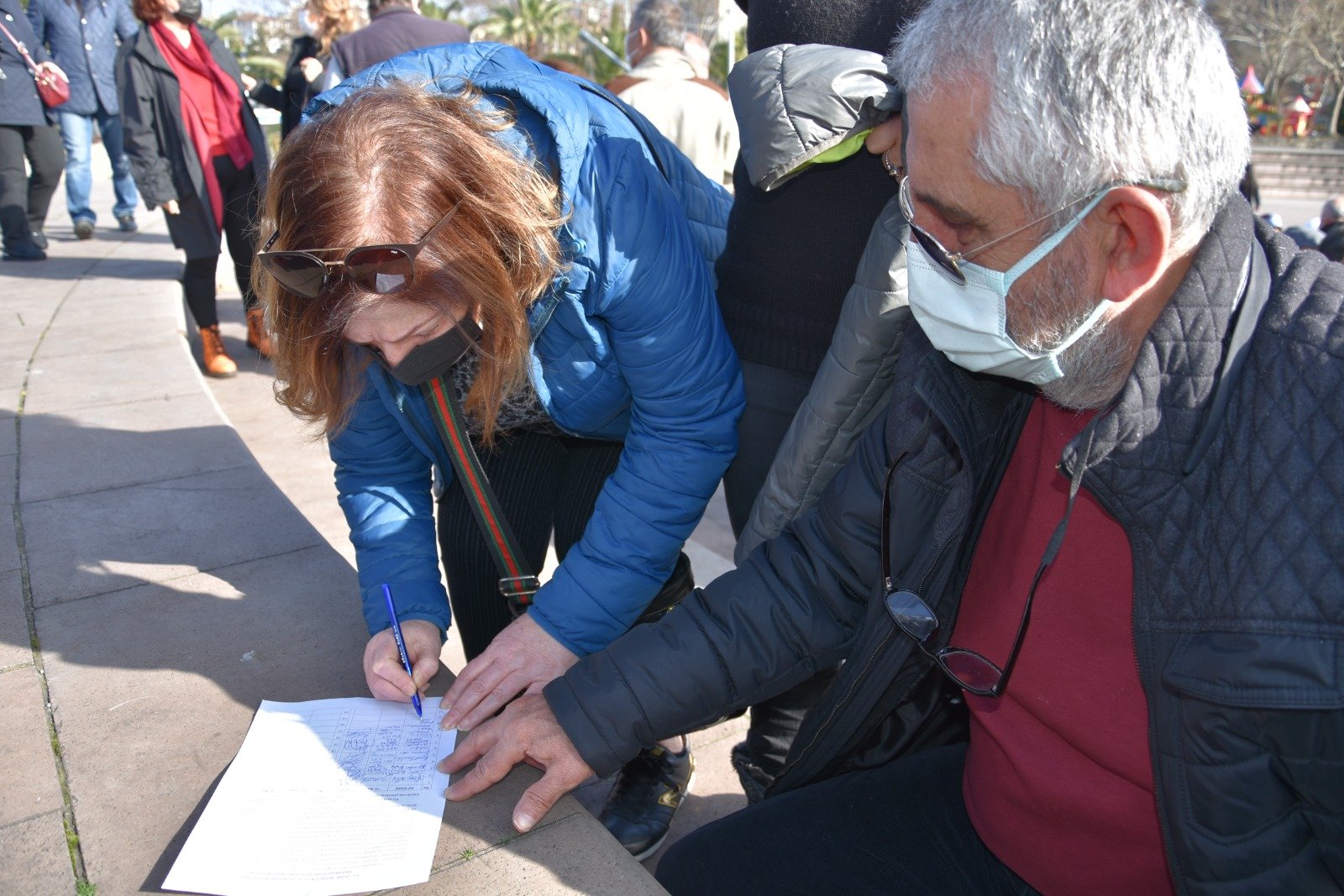 ‘Bugün saat normalde 11’de bir imza kampanyası başlatacaktık. Buradaki dolgu üzerine yapılmak istenen yapı ile ilgili olarak buranın uygun olmadığını belirtecektik. Bununla ilgili olarak kaymakama başvuru yaptığımızda, Kaymakamlığın kamu düzeninin ve güvenliğinin bozulacağı gerekçesiyle bize izin vermedi. O yüzden buraya bir masa koyamadık. Çadırımızda biz bunu yapacaktık ve on gün boyunca bunu yapacaktık, yine yapmayı düşünüyoruz burada.