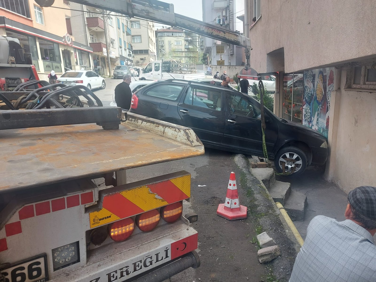 Olay;15.00 sıralarında Müftü Mahallesi,İbrahim Efe Sokak’ta meydana geldi. 67 TS 726 plakalı aracın sürücüsü, park halindeki aracını park yerinden çıkartmak isterken geri vites yerine birinci vitese takınca araç apartman boşluğuna düşerek burada bulunan çiçekçi camına ve duvarına çarpıp durabildi. Kazada yaralanan olmazken araçta ve dükkanda maddi hasar meydana geldi.
