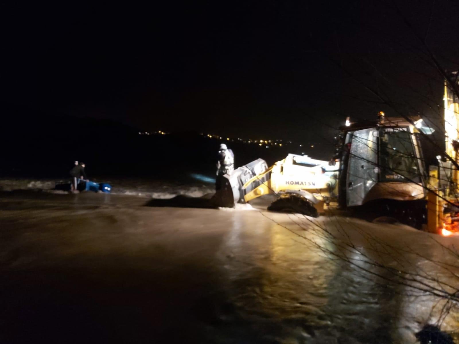 Olay gece saatlerinde Alaplı Çayboyu Türbe mevkide meydana geldi. İddiaya göre, pat pat olarak bilinen tarım aracı ile Alaplı’ya ekmek almak için dereden geçmek isteyen iki kişi deredeki su debisinin yüksek olması sebebiyle mahsur kaldı. 112 Acil Çağrı Merkezinden yardım istenmesi üzerine Olay yerine gelen Alaplı Belediyesi İtfaiye ekipleri suya girerek iş makinesine bağlı bir iple uzun uğraşlar sonucu iki kişiyi kurtardı.