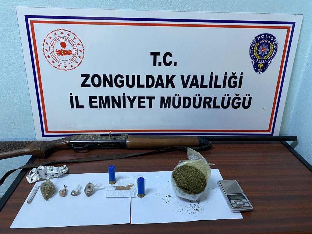 Edinilen bilgiye göre Zonguldak İl Emniyet Müdürlüğü ekipleri Devrek ve Kdz.Ereğli ilçelerinde uyuşturucu madde kullanan, ticaretini yapan şüpheli şahıslara yönelik 9-19 Şubat tarihileri arasında operasyon gerçekleştirdi. Devrek İlçe Emniyet Müdürlüğüne bağlı ekipler 09 Şubat tarihinde 240 gram uyuşturucu veya uyarıcı madde, 1 adet ruhsatsız av tüfeği ve bu tüfeğe ait fişekleri yaptığı uygulamada ele geçirdi. B.I. ve Ü.P isimli şüpheliler yakalandı, Devrek Cumhuriyet Başsavcılığına sevk edilen B.I. adli kontrol şartı ile serbest kalırken, Ü.P. isimli şüpheli uyuşturucu veya uyarıcı madde ticareti yapmak suçundan tutuklanarak cezaevine gönderildi.