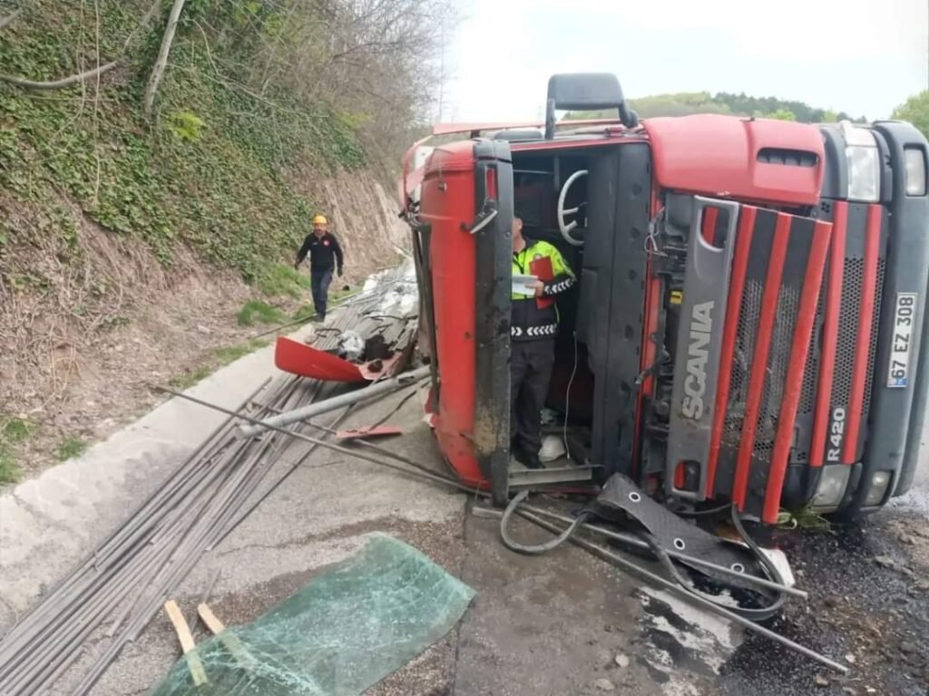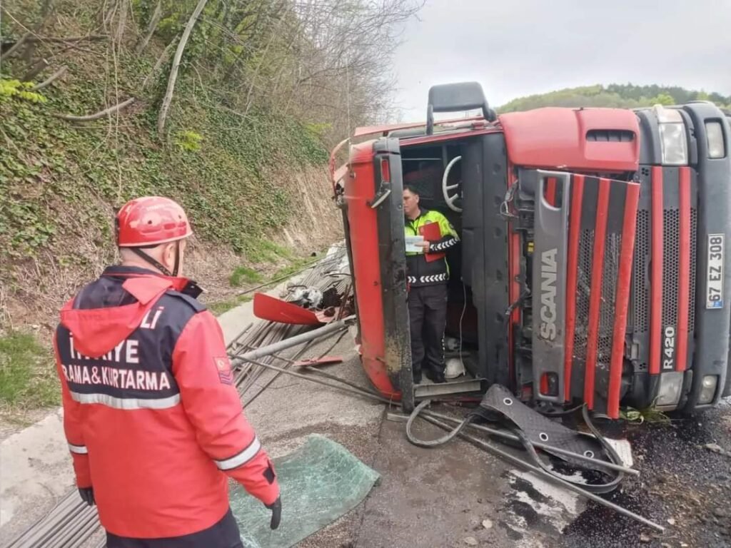Edinilen bilgilere göre, Ereğli istikametine seyir halindeki Şenol Dilbaz (44) idaresindeki 67 EZ 308 plakalı profil yüklü tır, Üçköy mevkiinde, sürücünün direksiyon hakimiyetini kaybetmesi sonucu devrildi.