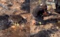 Yangından etkilenen kirpiye elleriyle su verdiler