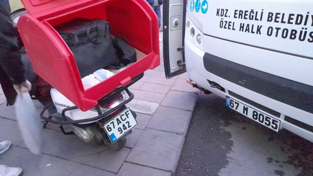 Kaza akşam saatlerinde Atatürk Bulvarı’nda bulunan otobüs durağında meydana geldi. İddiaya göre; Recep S. idaresindeki 67 M 8055 halk otobüsü durağa girmek için hamle yaptığı sırada, halk otobüsünün sağından geçen Murat A. idaresindeki 67 ACF 942 plakalı motosiklet ile çarpıştı. Çarpışmanın şiddeti ile motosiklet sürücüsü direksiyon hakimiyetini kaybedip 67 M 8068 plakalı halk otobüsüne çarptı. Kazada motosiklet sürücüsü Murat A. yaralanırken, olayı gören vatandaşlar yaralı sürücü için 112 Acil Çağrı Merkezi’ne ihbarda bulundu. Kaza yerine gelen sağlık ekipleri yaralı sürücüye ilk müdahalesini yaptıktan sonra ambulansla tedbir amaçlı hastaneye kaldırıldı. Kazanın ardından otobüs şoförü Recep S.’ye alkol testi yapan polis, ardından ifadesini almak üzere Recep S.’yi Ereğli İlçe Emniyet Müdürlüğü’ne götürdü. Öte yandan bazı halk otobüsü şoförleri ise; yaşanan kazaya tepki gösterdi. Şoförler, motosikletli sürücülerin çoğu zaman sağ şeritten gittiklerini iddia ederek, motosikletli sürücülerin daha dikkatli olmalarını istedi.