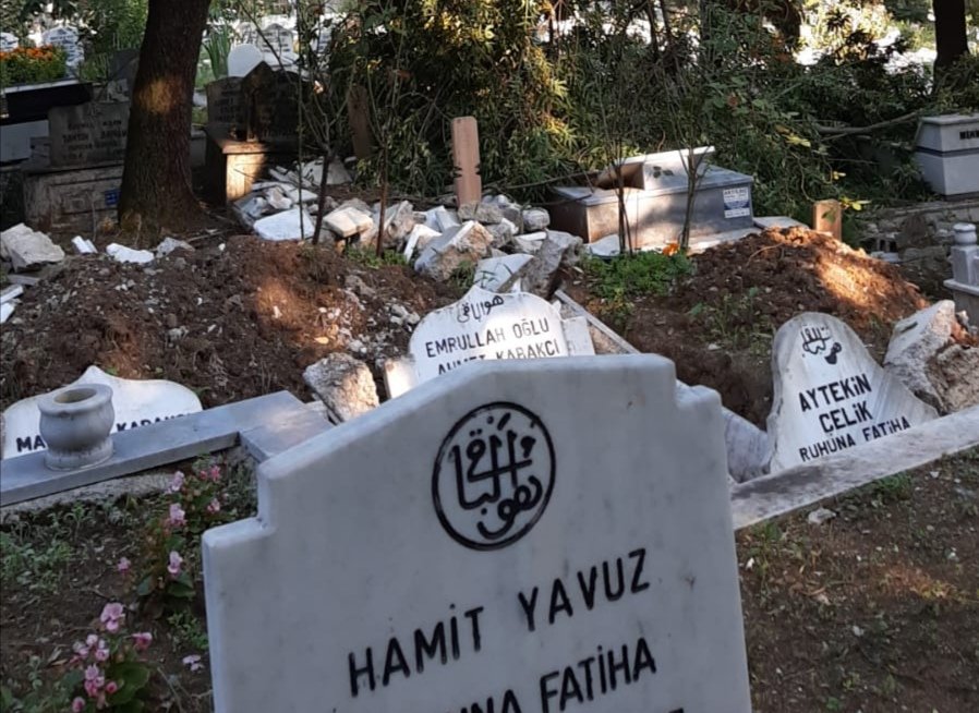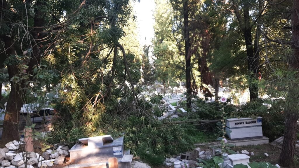 Ağaçların bazı mezarlara zarar verdiği ve mezar taşlarının kırıldığı görüldü.