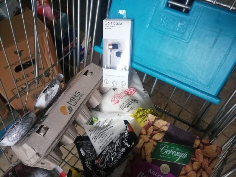 Market çalışanları ise şahsın çalmaya çalıştığı ürünleri marketteki sepete koyarak kontrol etti.