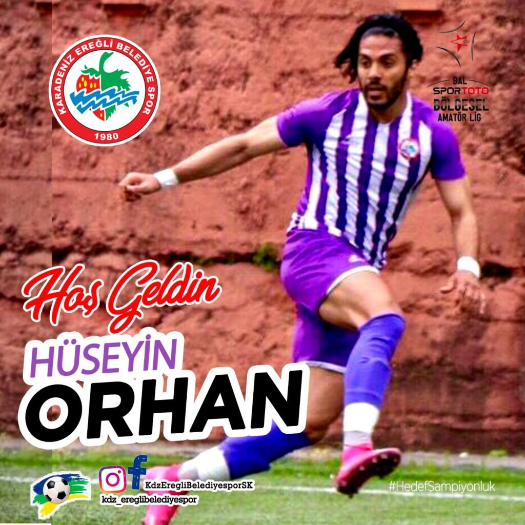 Yaş: 27 D. Yeri: Samsun Oynadığı Kulüpler: 1930 Bafra Spor Kızılcabölük Terme spor Kdz. Ereğli Belediye spor Emre Berkan Kahvecioğlu 3’ü Türkiye Kupası olmak üzere 3. Ligde 35 Maç forma giyerken 2016 yılından itibaren Bal Ligi’nde Ereğli Belediye spor forması giyiyor. Hüseyin Orhan Sol Bek Yaş: 26 D.Yeri: Diyarbakır Oynadığı Kulüpler: Kdz. Ereğli Belediye spor’un yeni transferi, Gönen Belediye spor’un Bölgesel Amatör Lige yükselmesinde büyük pay sahibi. Şampiyonluğun ardından Balıkesir ekibiyle Bölgesel Amatör Lig deneyimi yaşayan Orhan, tamamı ilk on bir 21 maçta bin 825 dakika süre alarak istikrarlı bir performans sergiledi.
