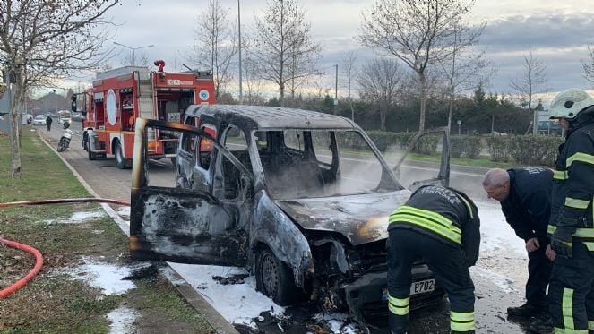 Seyir halindeki araç alevlere teslim oldu
