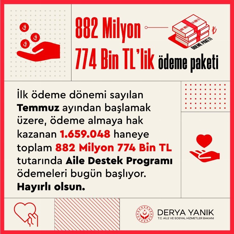 882 milyon 774 bin TL ‘sosyal’ destek hesaplarda