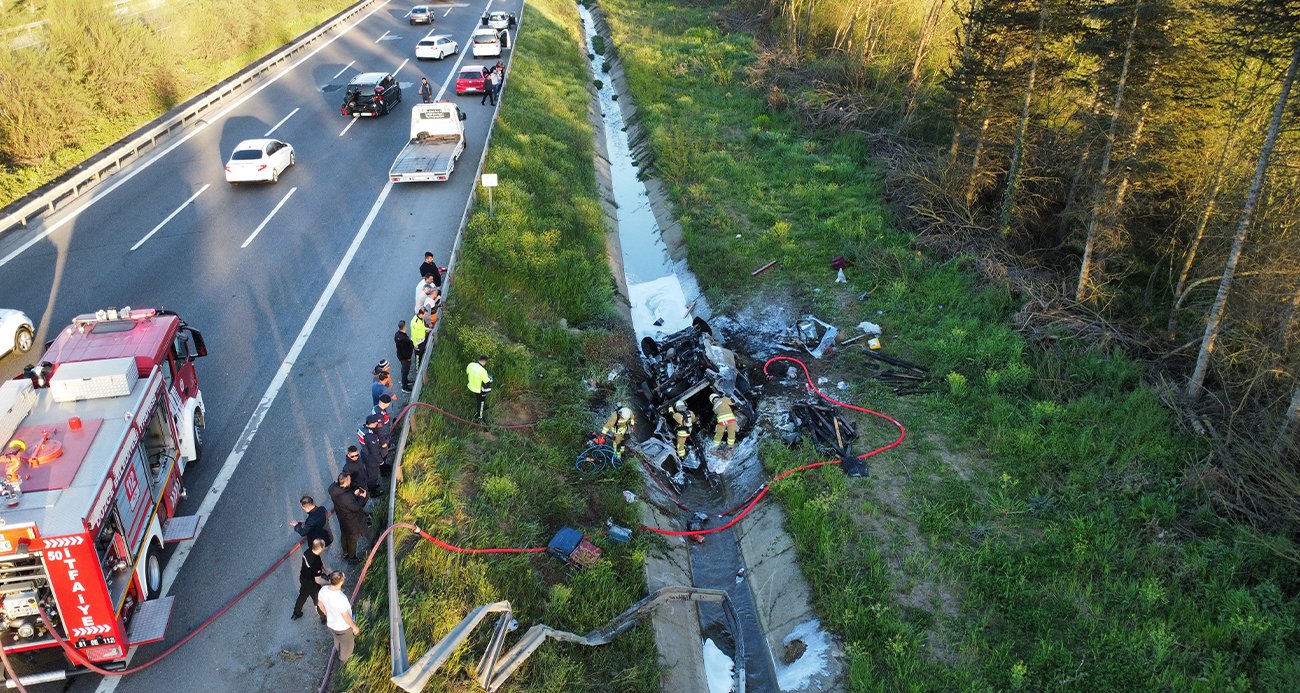 Kanala uçan minibüs alev alev yandı: 2 yaralı