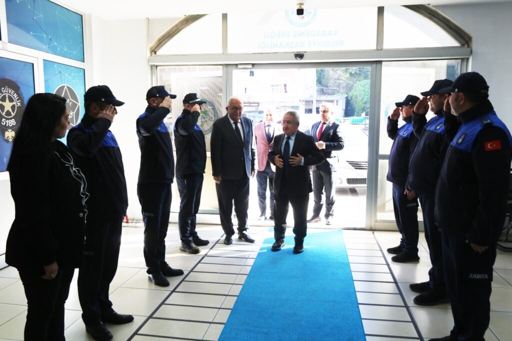 Kdz. Ereğli Belediye Başkanı Halil Posbıyık, Eski Deniz Kuvvetleri Komutanı Oramiral Metin Ataç’ı, beraberinde başkan yardımcılarıyla birlikte zabıta karşılama mangası eşliğinde belediye binası girişinde karşıladı.