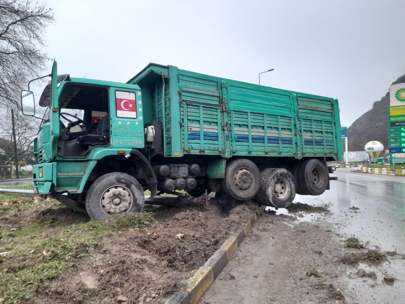 Direkleri deviren kamyon refüje çıktı