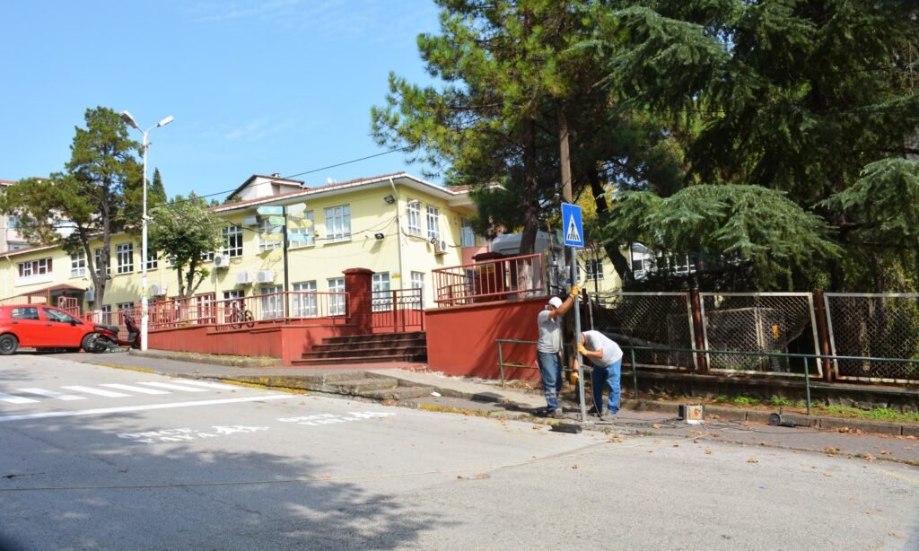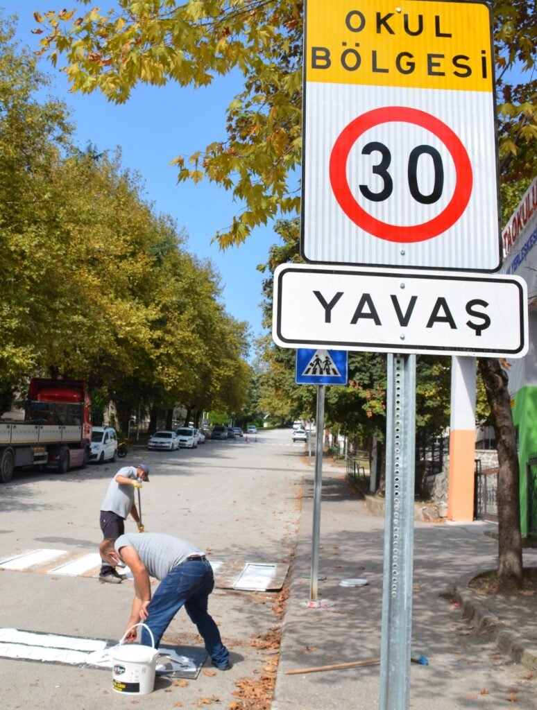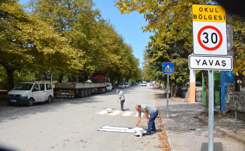 Başkan Halil Posbıyık’ın talimatıyla Ulaşım Hizmetleri Müdürlüğü, Fen İşleri Müdürlüğü ve İmar ve Şehircilik İşleri Müdürlüğü Numarataj Birimi ortaklaşa olarak okul önlerinde yaya geçidi yapıyor. Ekipler ayrıca, okul bölgesini gösteren çeşitli uyarıların yer aldığı tabelaları dikiyor.