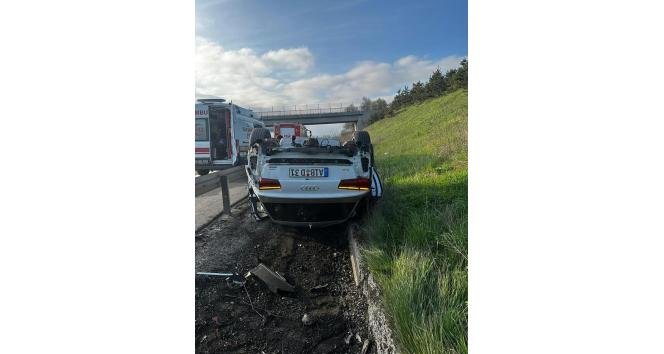 Otoyolda takla attı, yoldan çıktı