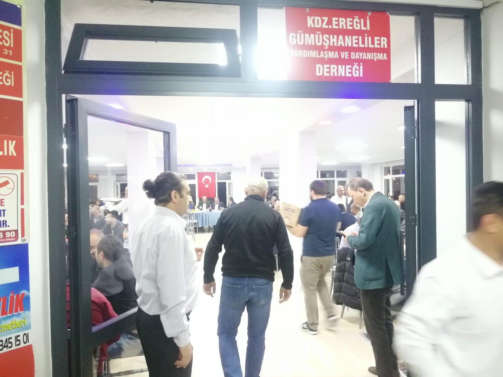 Karadeniz Ereğli Gümüşhaneliler Yardımlaşma ve Dayanışma Derneği iftar düzenledi. Organizasyona Zonguldak Milletvekili Hamdi Uçar, Zonguldak Milletvekili Polat Türkmen, Zonguldak Milletvekili Ahmet Çolakoğlu, 22. ve 23. Dönem Milletvekili Fazlı Erdoğan, Zonguldak Belediye Başkanı Ömer Selim Alan, Karadeniz Ereğli Belediye Başkanı Halil Posbıyık, AK Parti Ereğli İlçe Başkanı Saffet Bozkurt Ereğli Milliyetçi Hareket Partisi İlçe Başkanı Rahman Demirtürk, Büyük Birlik Partisi İlçe Başkanı Yusuf Karaoğlu, İyi Parti Ereğli İlçe Başkanı Evrim Balbaloğlu, Cumhuriyet Halk Partisi İlçe Yöneticileri, Zonguldak Gümüşhaneliler Dernek Başkanı Pamuk Cansız ve yönetimi diğer protokol üyeleri, sivil toplum örgütlerinin yöneticileri, iş adamları ve çok sayıda davetli katıldı.