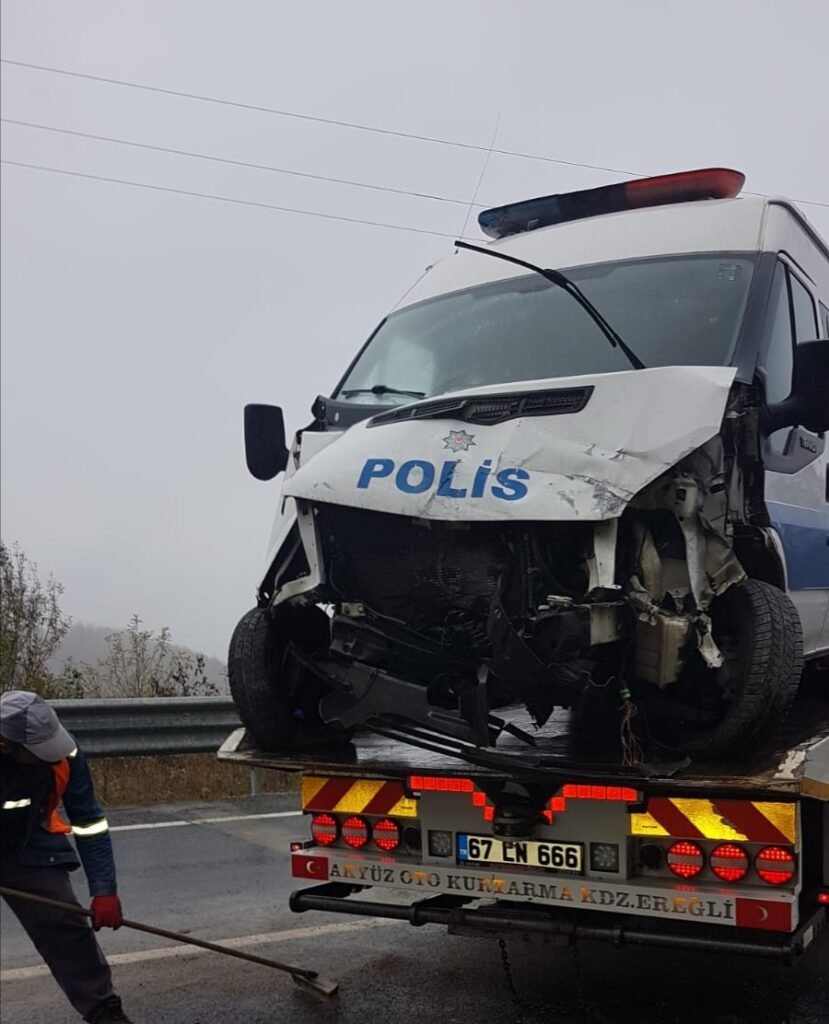 Zonguldak-Ereğli karayolunda meydana gelen trafik kazasında polis minibüsü kaza yaptı. Kazada bir polis memuru yaralanırken, yaralı polis olay yerine gelen ambulansla hastaneye kaldırıldı.