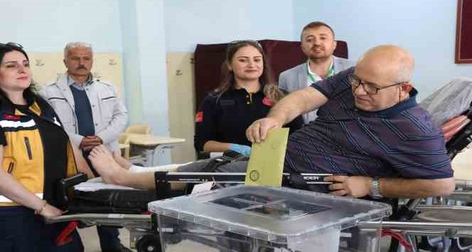 Oy kullanmaya ambulans ile gitti