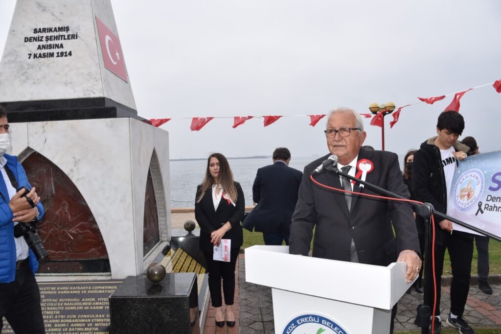 1.Dünya Savaşı devam ederken, İstanbul’dan hareket ederek Kafkas Cephesi’ne yardım götüren ancak 7 Kasım 1914 sabahı Ereğli açıklarında Rus Savaş gemilerince batırılan Bezm-i Alem, Bahr-i Ahmer ve Mithat Paşa gemilerinde şehit olan ve tarihe Sarıkamış Deniz Şehitleri olarak geçen 221 şehit için Kdz. Ereğli Belediyesi tarafından sahil bandında yaptırılan ‘Sarıkamış Deniz Şehitleri Anıtı’nda 107’nci yılında anma töreni düzenlendi.