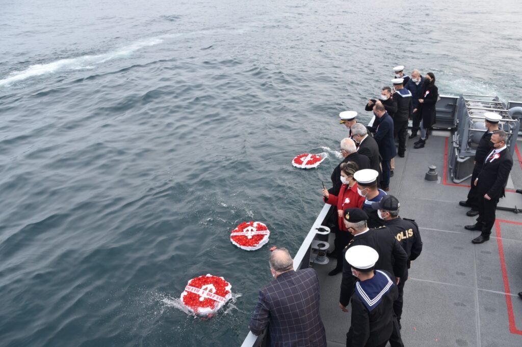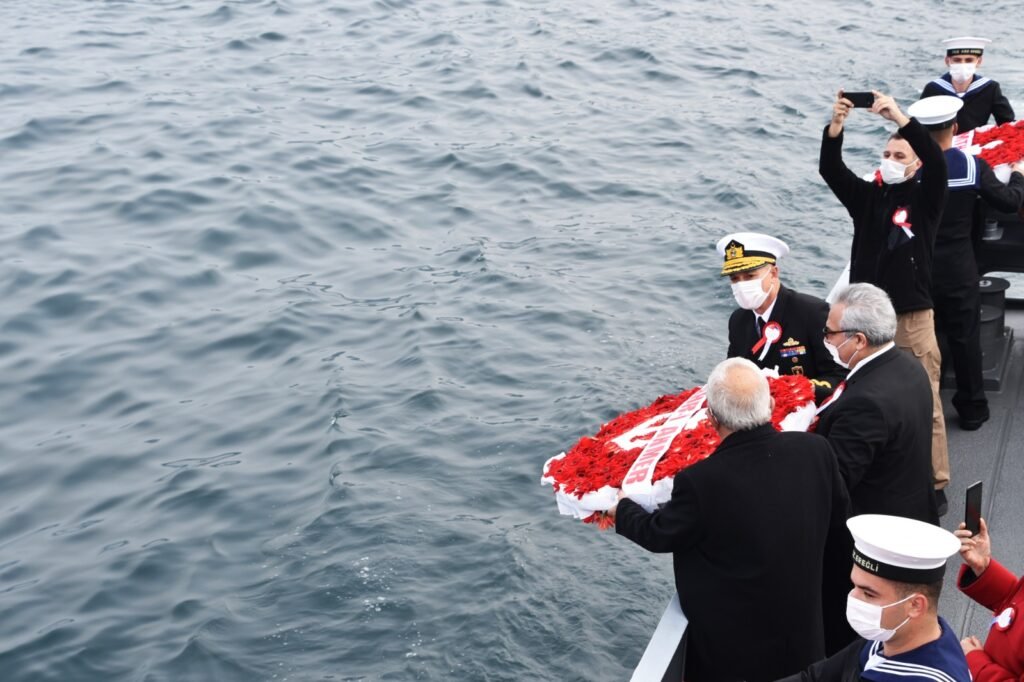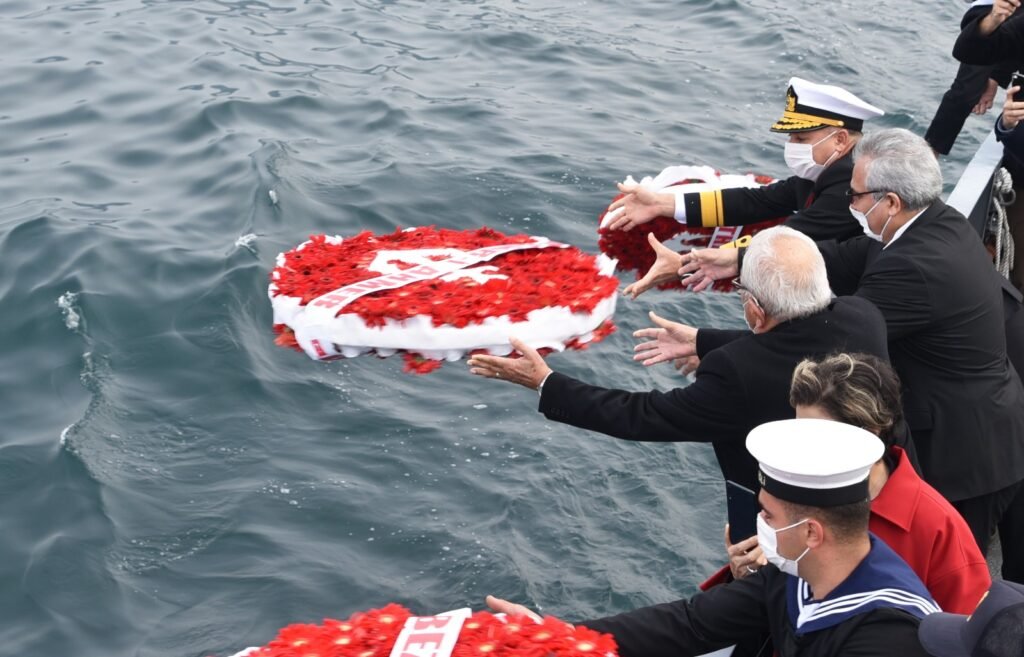 “Bezm-i Alem”, “Bahr-i Ahmer” ve “Mithat Paşa” gemilerinin mürettebatı için ilçe protokolü tarafından Deniz Kuvvetleri’ne bağlı TCG Kdz. Ereğli Karakol Gemisi ile olayın yaşandığı bölgede mavi sulara çelenk bırakıldı.