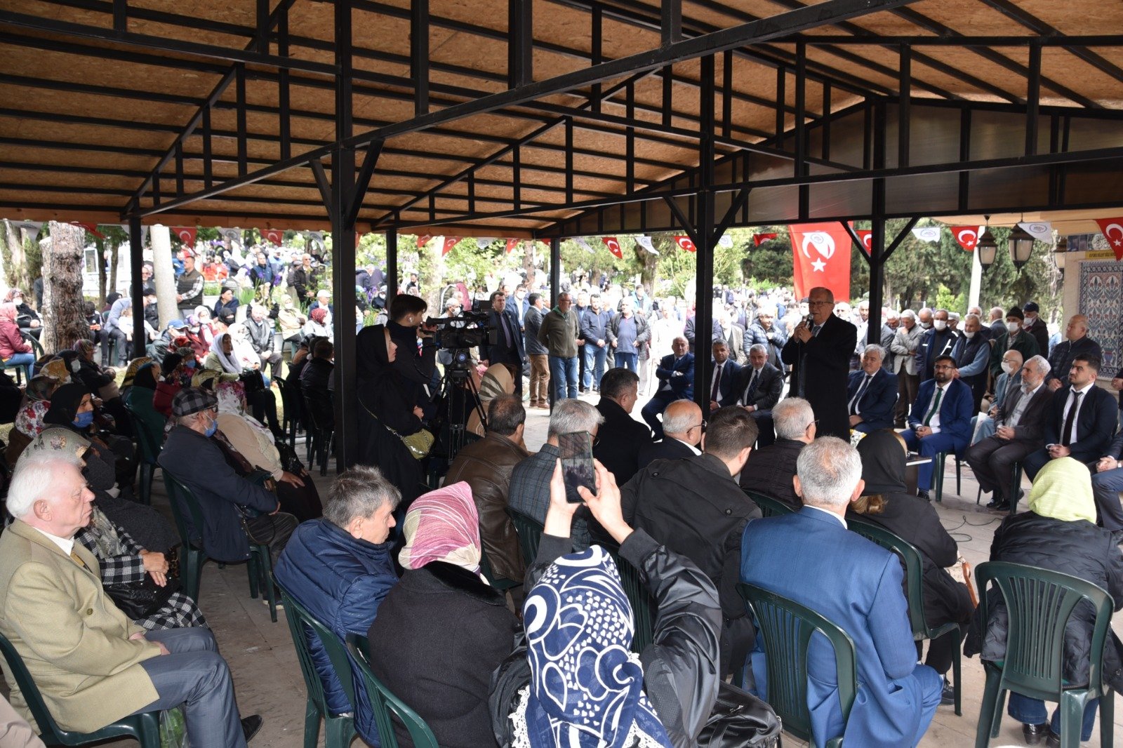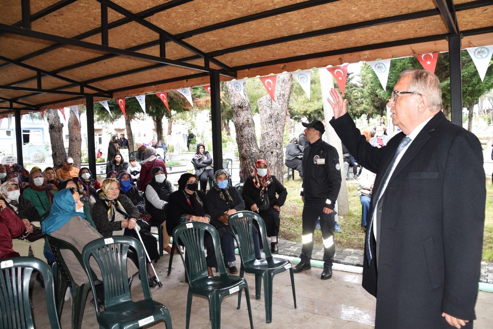 Kadir gecesinde 15 bin kişiyle iftar yaptık. Bütün dostlarımız ve halkımız katıldı. Muhteşem bir gece geçirdik. Bugünde arife gününde mevlid programında birlikteyiz. Ölümüze sahip çıkıyoruz. Ölüsüne sahip çıkmayan, dirisine zaten sahip çıkamaz. O şiarla hareket ediyoruz. Şehir mezarlığımıza yeni yeni yollar yaptık, parke döşedik. Diğer mezarlıklarımıza da bakıyoruz. Bugün yakınlarınızın mezarlarına çiçek ekersiniz diye 40 bin fide dağıtacağız.