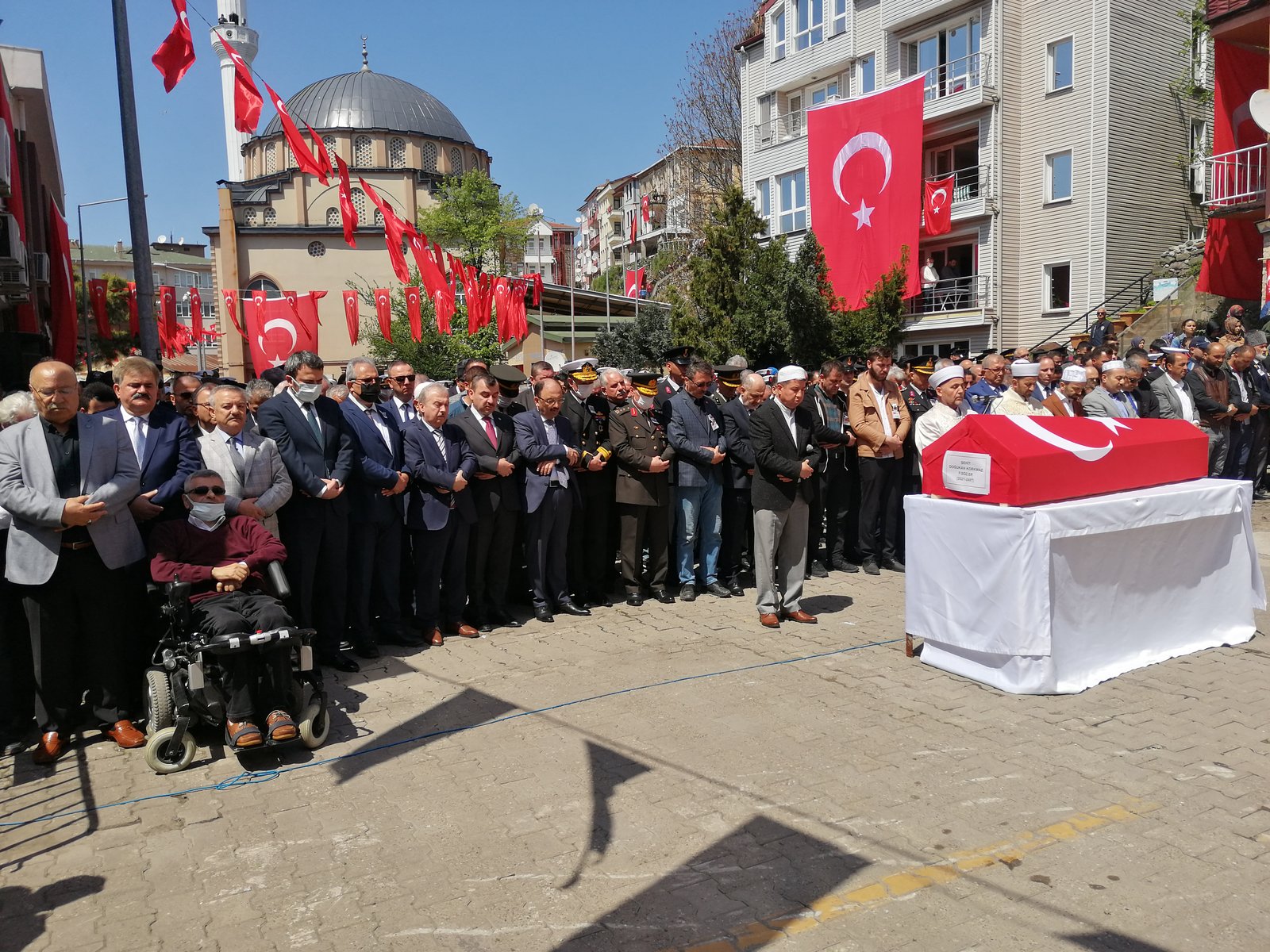 Helallik alınmasının ardından Şehit Sözleşmeli Piyade Er Doğukan Korkmaz’ın naaşı Bozhane Camii’ne götürüldü.