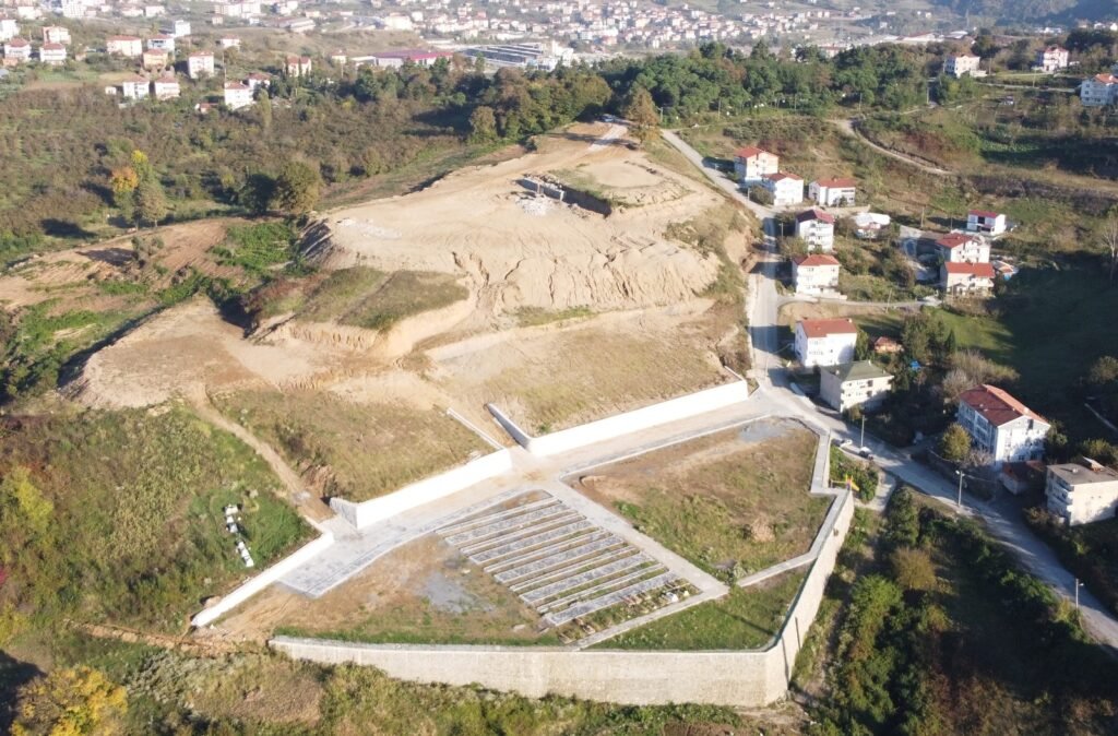 Kdz. Ereğli Belediyesi’nin Belen Yenimahalle’de 82 bin 500 metrekare alan üzerine kurduğu Karadeniz Bölgesinin bütün hizmetleri bünyesinde toplayacak en büyük Şehir ve Şehitler Mezarlığı’nda çalışmalar sürüyor. Başkan Posbıyık, defin işlemlerine başladıkları mezarlığın tepe noktasına kuracakları Şehit Mezarlığı için istinat duvarı örme çalışmalarının başladığını açıkladı.