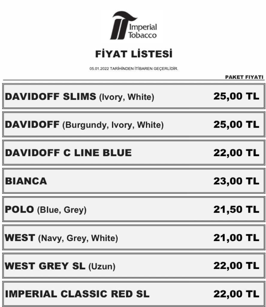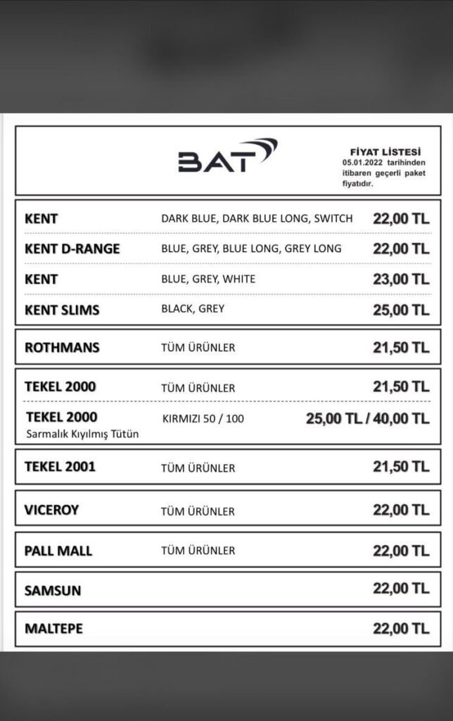 Sigara ve alkol grubundan alınan Özel Tüketim Vergisi’nde (ÖTV) yüzde 47 oranında yaşanan artışın ardından sigara fiyatı üzerindeki vergi yükü de arttı. 4 Ocak 2022 Salı günü ise ilk sigara zammı haberi Philip Morris grubundan geldi. Akşam saatlerinde ise BAT, JTI ve Imperial Tobacco grubundaki sigaraların fiyatları yeni zamlarla güncellendi.