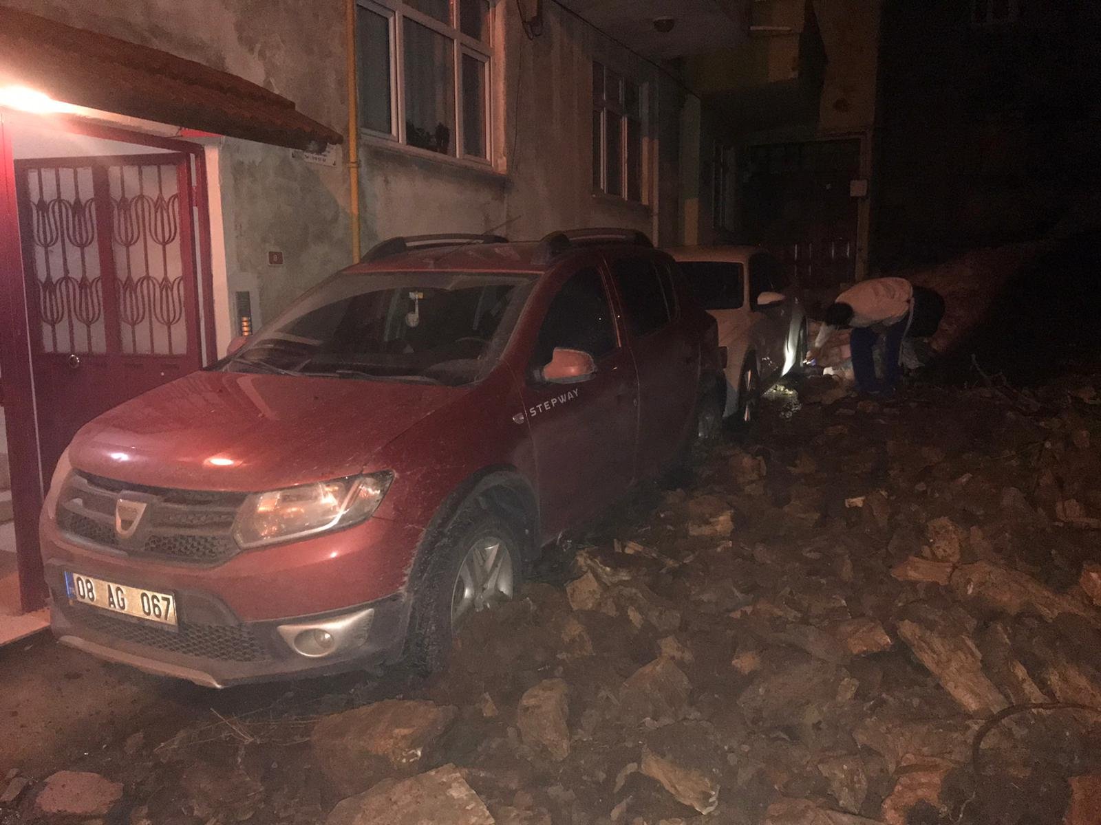 Duvar Çöktü: 2 Araç Zarar Gördü