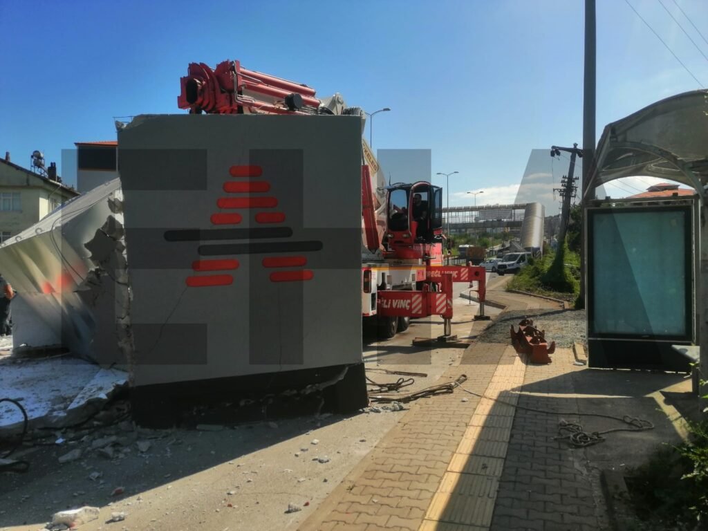 Zonguldak’ın Ereğli ilçesinde Enerji Sa ekiplerinin alt yapı çalışması yaptığı sırada, trafo indirme işlemi yaparken trafo vinçten yola devrildi.