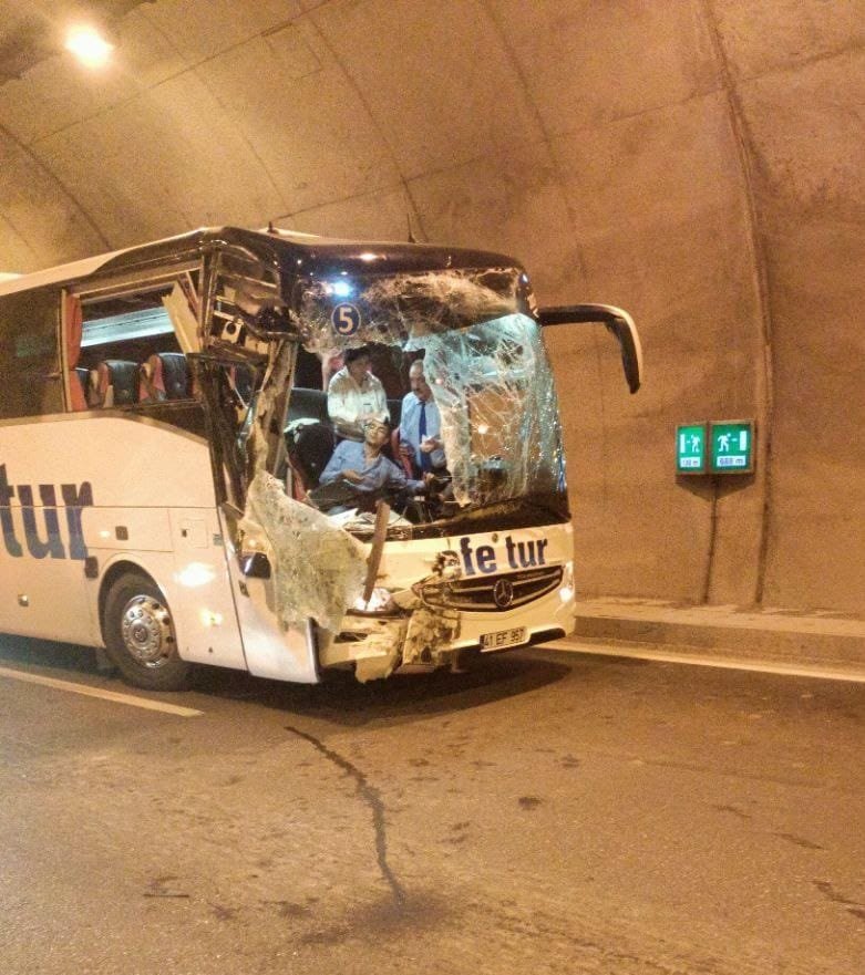 Kaza saat 10.45 sularında Alaplı ile Akçakoca ilçeleri arasında yer alan 2. tünelde meydana geldi. Edinilen bilgilere göre Alaplı istikametine seyir halinde olan 41 EF 957 plakalı yolcu otobüsü önündeki kamyona arkadan çarptı. Çarpmanın şiddeti ile yolcu otobüsünün ön camı patlarken, muavinin yüzüne kırılan cam parçaları geldi. Yolcular ise büyük şok yaşadı. Kazayı gören vatandaşların ihbarı üzerine olay yerine çok sayıda ambulans ve itfaiye ekibi sevk edildi. Kaza yerine ulaşan sağlık ekipleri yaralılara müdahalede bulundu. İtfaiye ekipleri ise otobüste sıkışan R.S.’yi sıkıştığı yerden çıkararak sağlık ekiplerine teslim etti. Müdahaleleri olay yerinde yapılan yaralılardan R.S. ve E.Ş. Ereğli’deki özel hastanelere, şoka giren C.E. ve S.E Alaplı Devlet Hastanesine sevk edildi. Kazada ağır yaralanan R.S.’nin sol bacağına otobüsün motorundan kopan demir parçanın sağlandığı öğrenildi. Hemen tedavi altına alınan yaralılardan muavin R.S.’nin hayatı tehlikesinin sürdüğü öğrenildi.