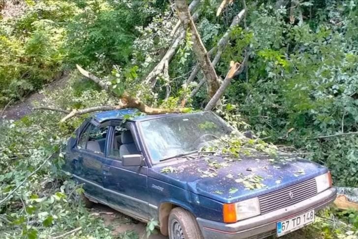 Zonguldak’ın Ereğli ilçesinde mantar toplamaya giden vatandaşların aracının üzerine ağaç devrildi.