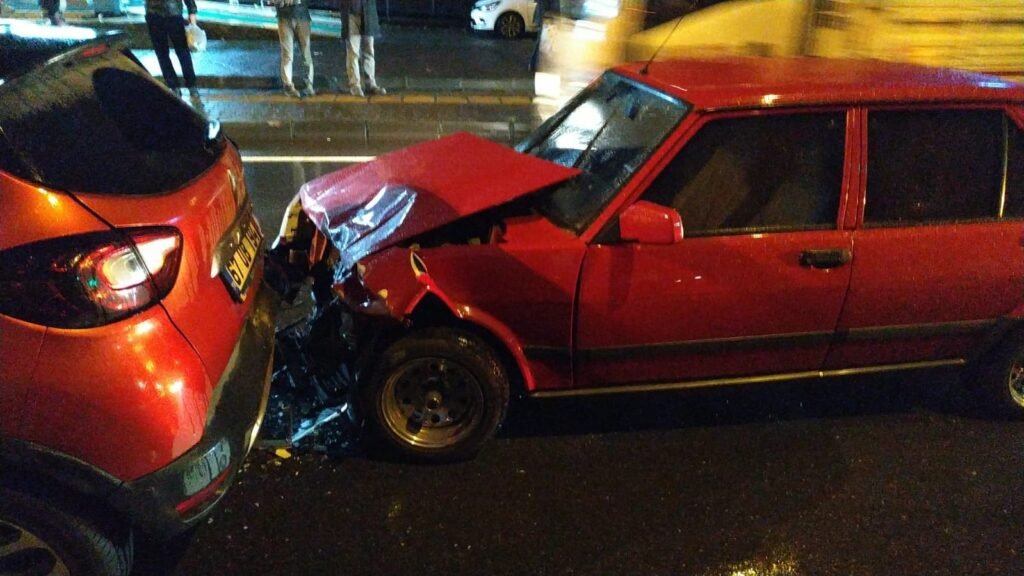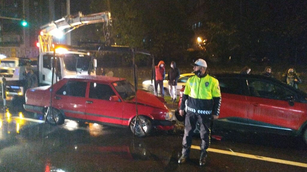 Yağmur nedeniyle kayganlaşan yolda 3 araç çarpıştı