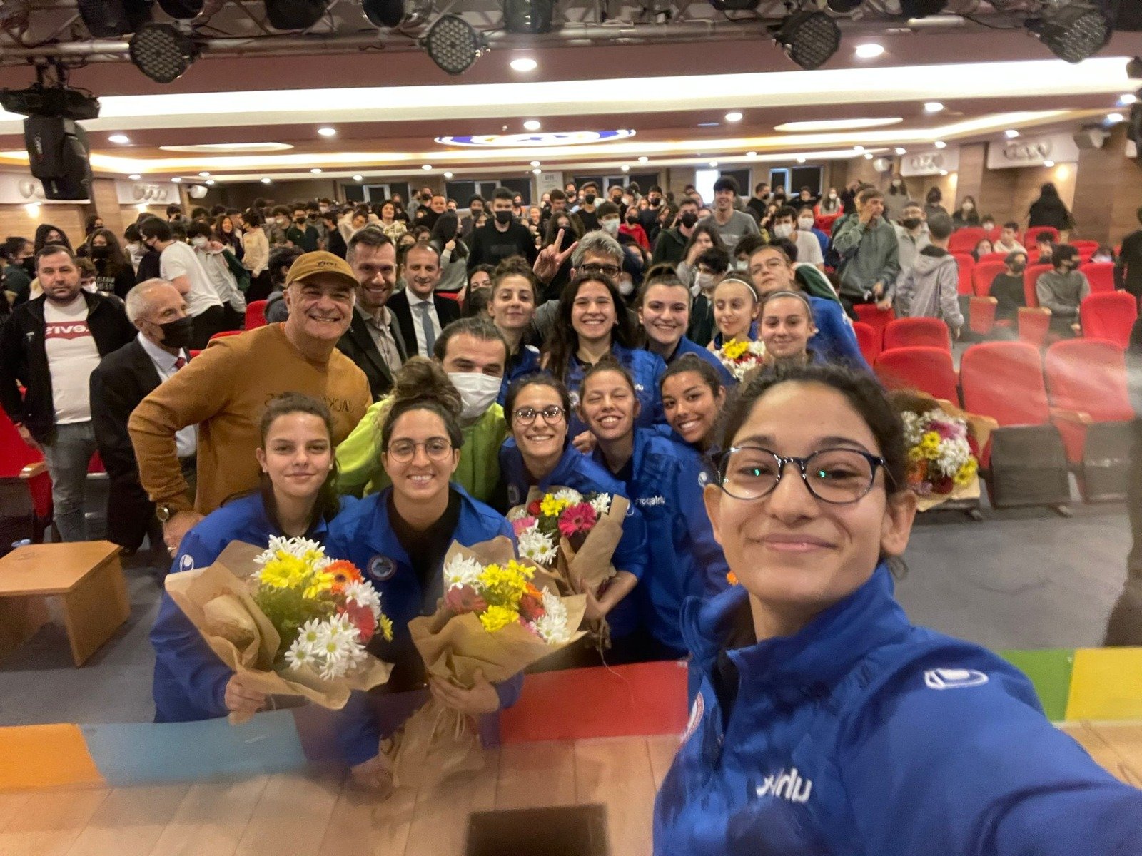 KADIN FUTBOLCULAR ÖĞRENCİLERLE BULUŞTU