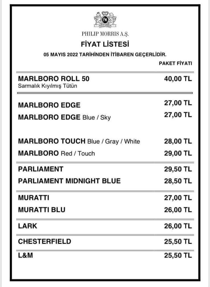 Sigara fiyatlarına yeni zam geldiği iddia edildi. Sosyal medyada yayılan iddia sonrası güncel sigara fiyatları araştırılmaya başlandı. İddiaya göre Philip Morris grubu sigara fiyatlarına 2 TL’lik zam yapıldı.