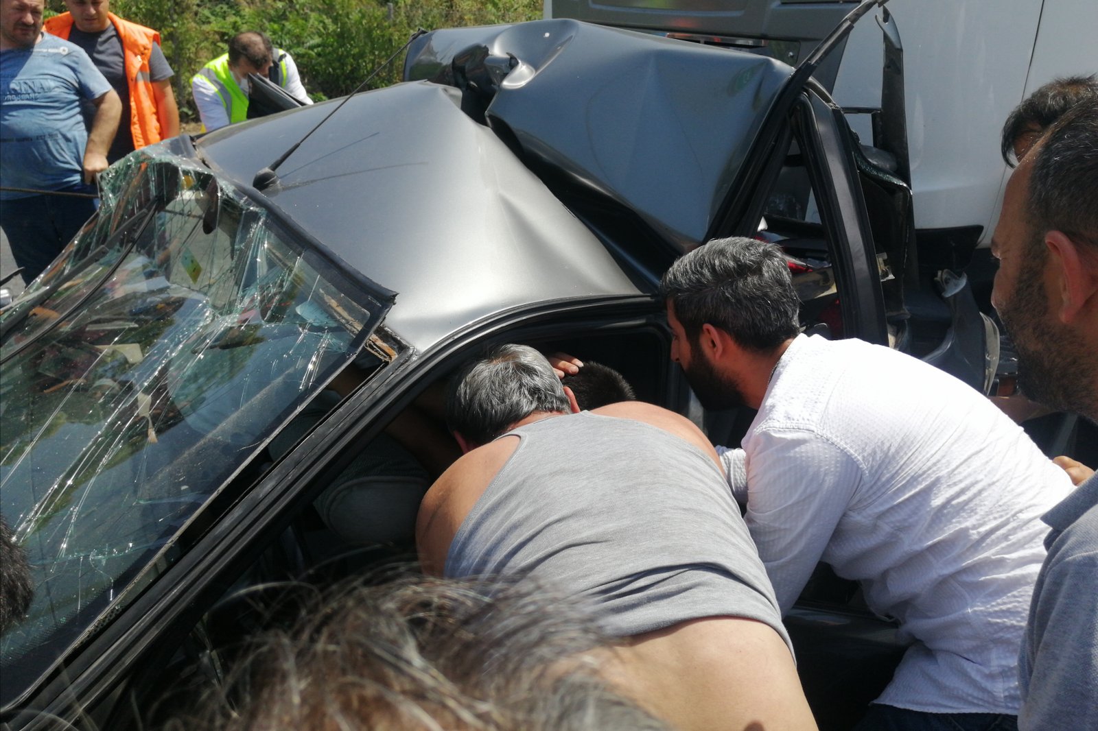 Kazada 81 GC 297plakalı otomobil içinde bulunan 3 kişi yaralanırken, kazayı gören diğer araçtaki vatandaşlar 81 GC 297plakalı otomobilin arka koltuğunda sıkışan çocuğu kendi imkanları ile çıkardı. Diğer vatandaşlar ise olayı 112 Acil Çağrı Merkezi’ne bildirdi.