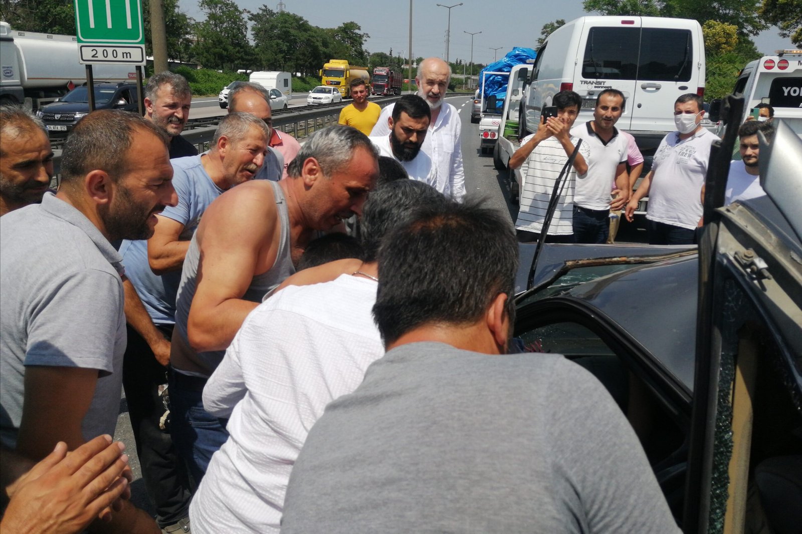 Kaza, öğle saatlerinde Kocaeli İstanbul Anadolu Otoyolu üzerinde meydana geldi. Edinilen bilgilere; Kandıra kavşağı istikametinde ilerleyen tırın aniden yavaşlaması sonucu arkasından gelen 81 GC 297 plakalı otomobil tıra, ardından gelen iki kamyon ise diğer iki araca çarptı.